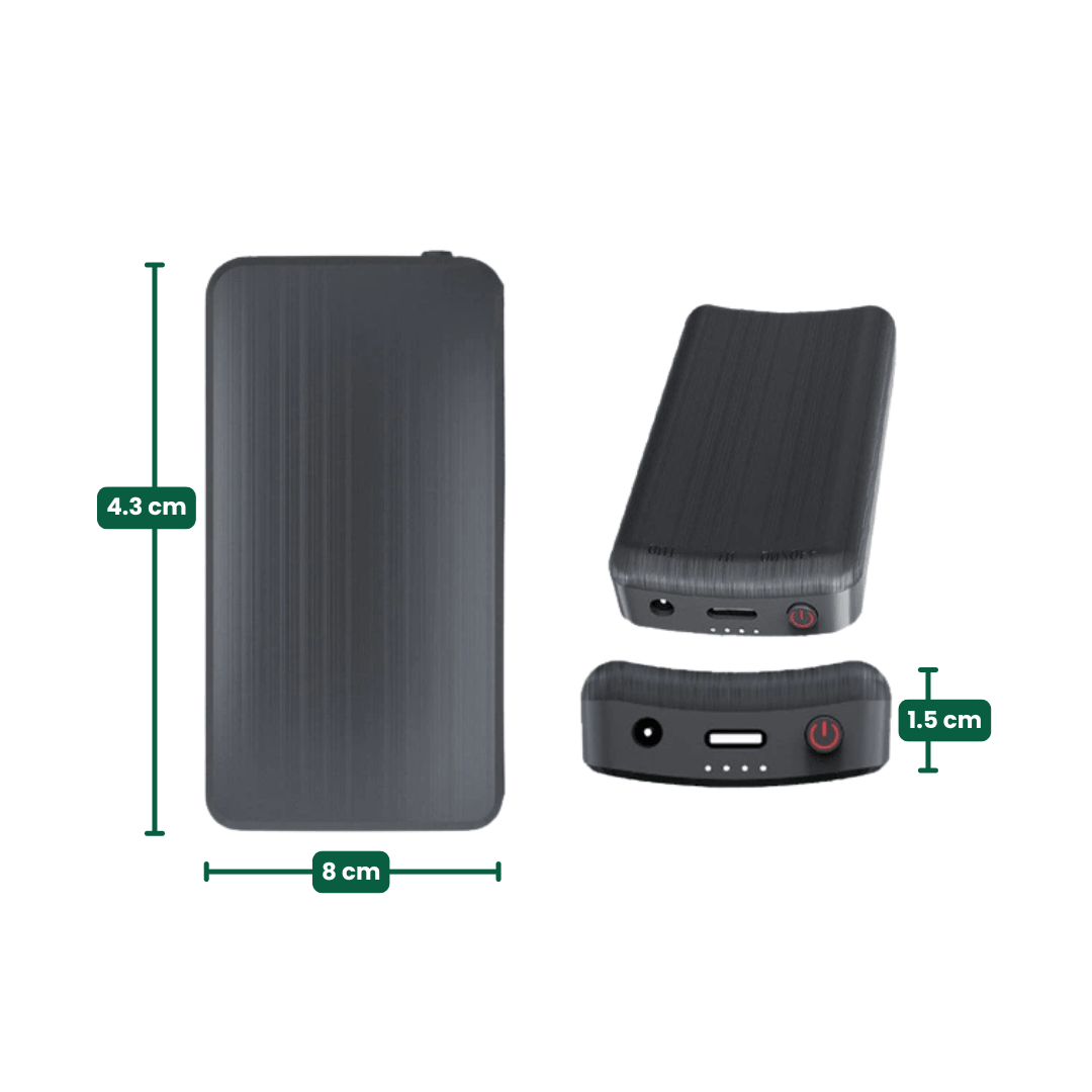 Nie ma nic bardziej nieprzyjemnego niż zimne stopy podczas pięknego zimowego spaceru lub długiego dnia na stoku. Dzięki naszemu Kompaktowemu Powerbankowi do Podgrzewanych Skarpet zawsze będziesz mieć pod ręką niezawodne źródło energii. Ta bateria została zaprojektowana specjalnie jako zapasowe lub dodatkowe ogniwo, aby Twoje stopy pozostawały przyjemnie ciepłe gdziekolwiek się udasz.
